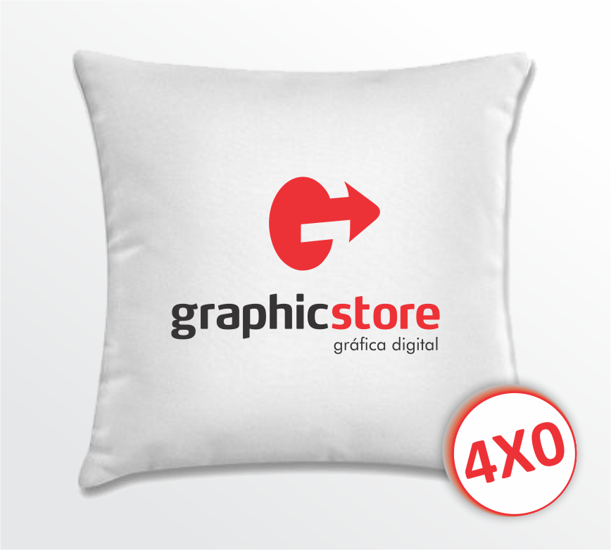 Almofada branca, com impressão por sublimação e enchimento de fibra siliconada.